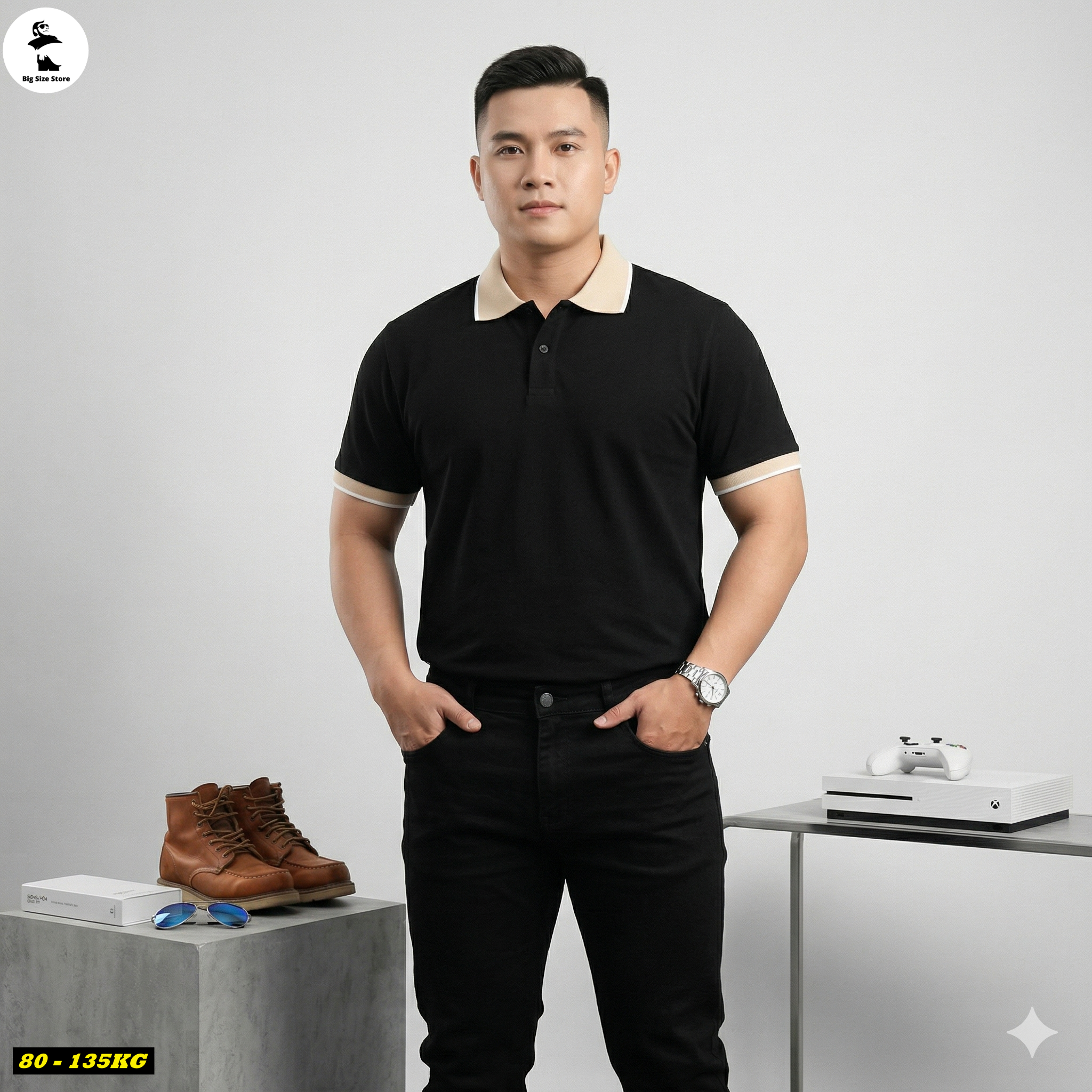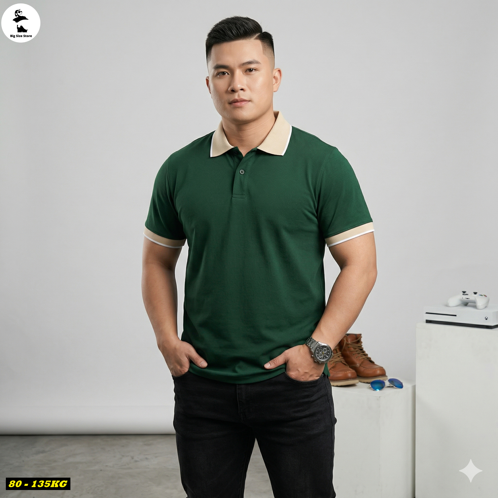 Áo polo nam big size phối be N03-PL