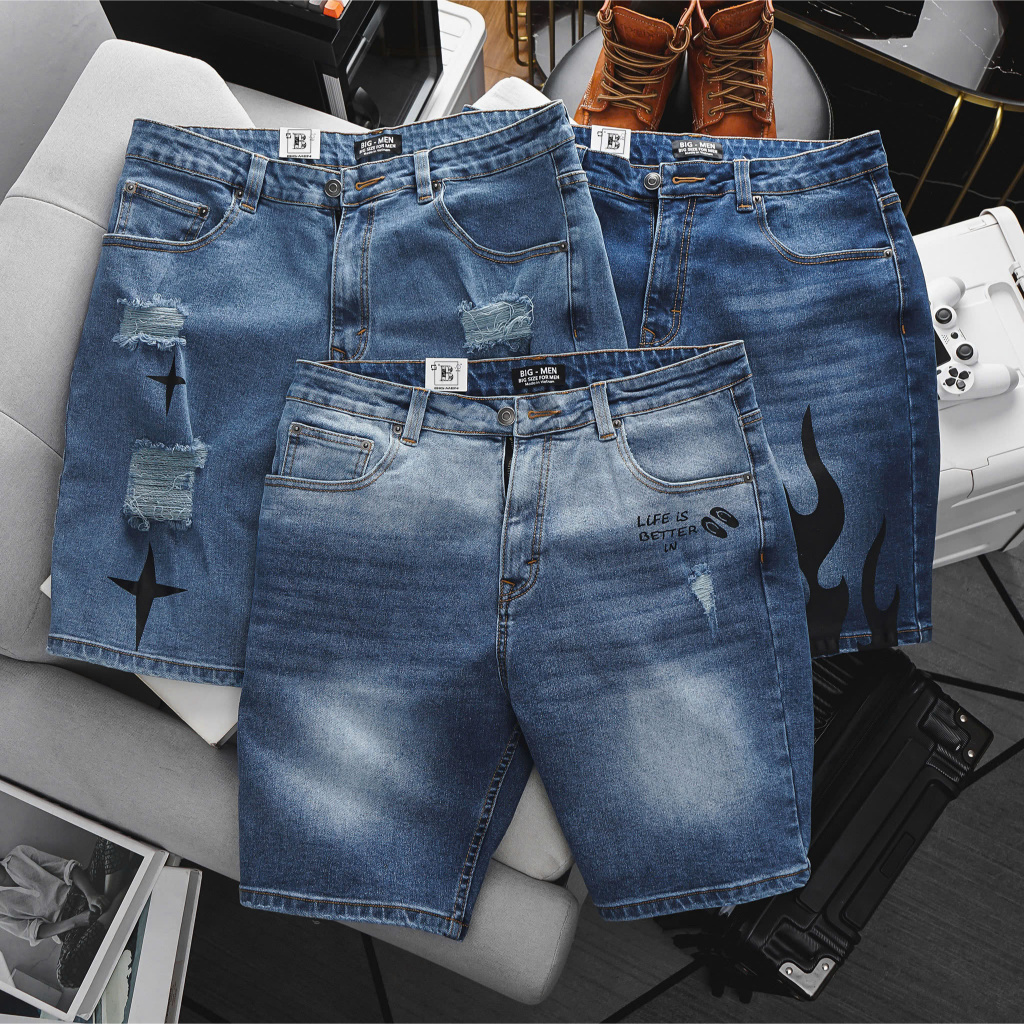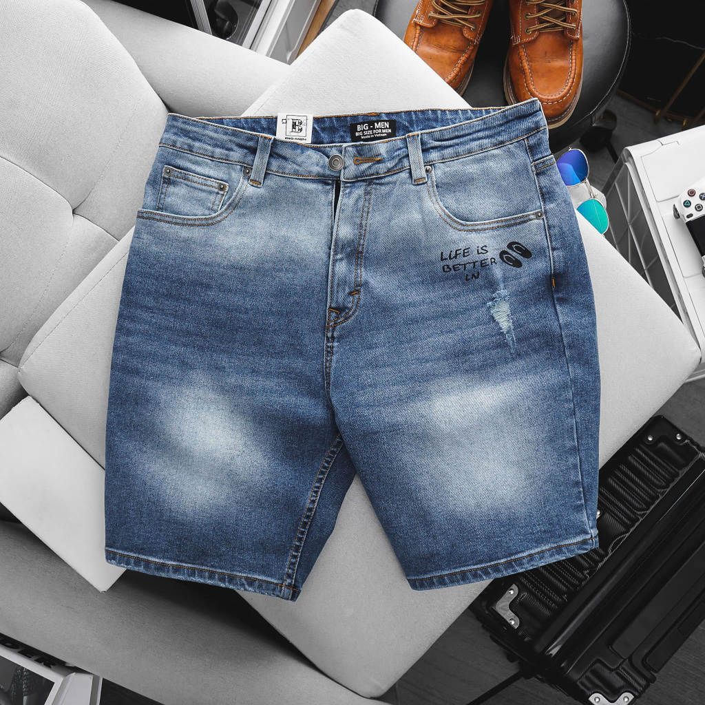 Quần short jean nam big size xanh họa tiết N10-SJ