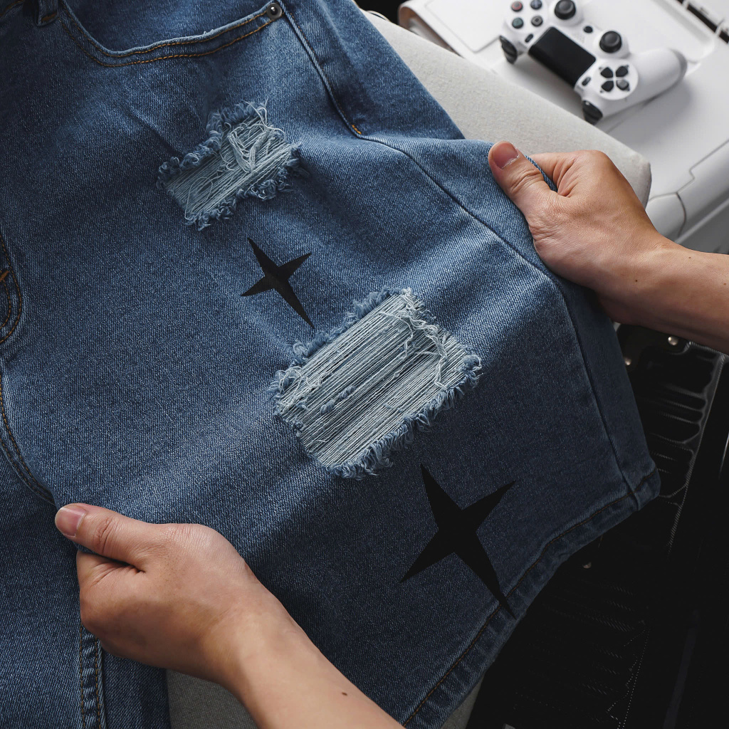 Chất liệu cao cấp: Vải jean bền bỉ, mặt vải đanh mịn, an toàn và không gây kích ứng da.